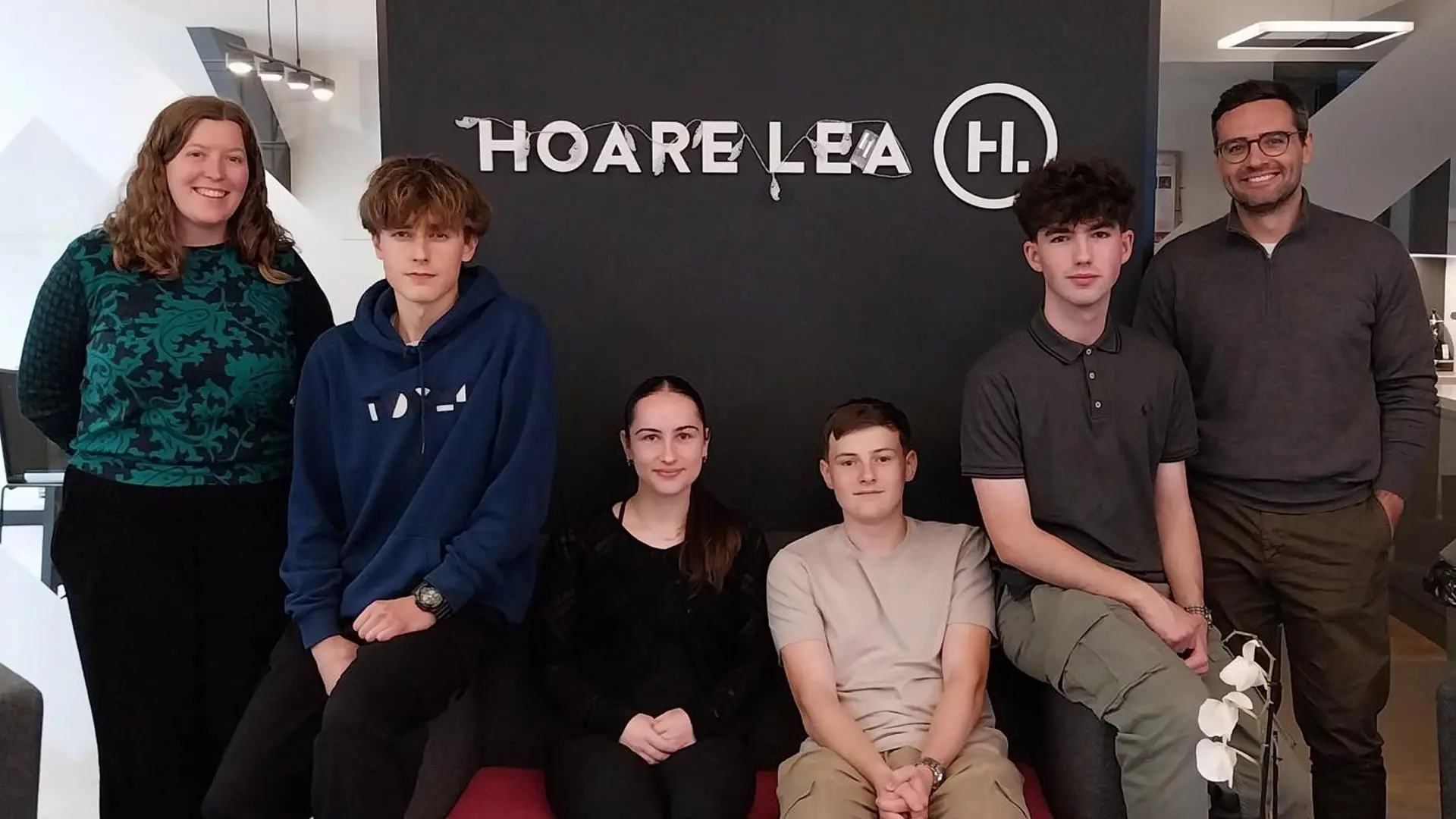 (from left): Kirsten Ross, Hoare Lea; students David Banasiewicz, Amy Walker, Thomas McAulay, Cooper Weir; Craig Scullion, Hoare Lea.